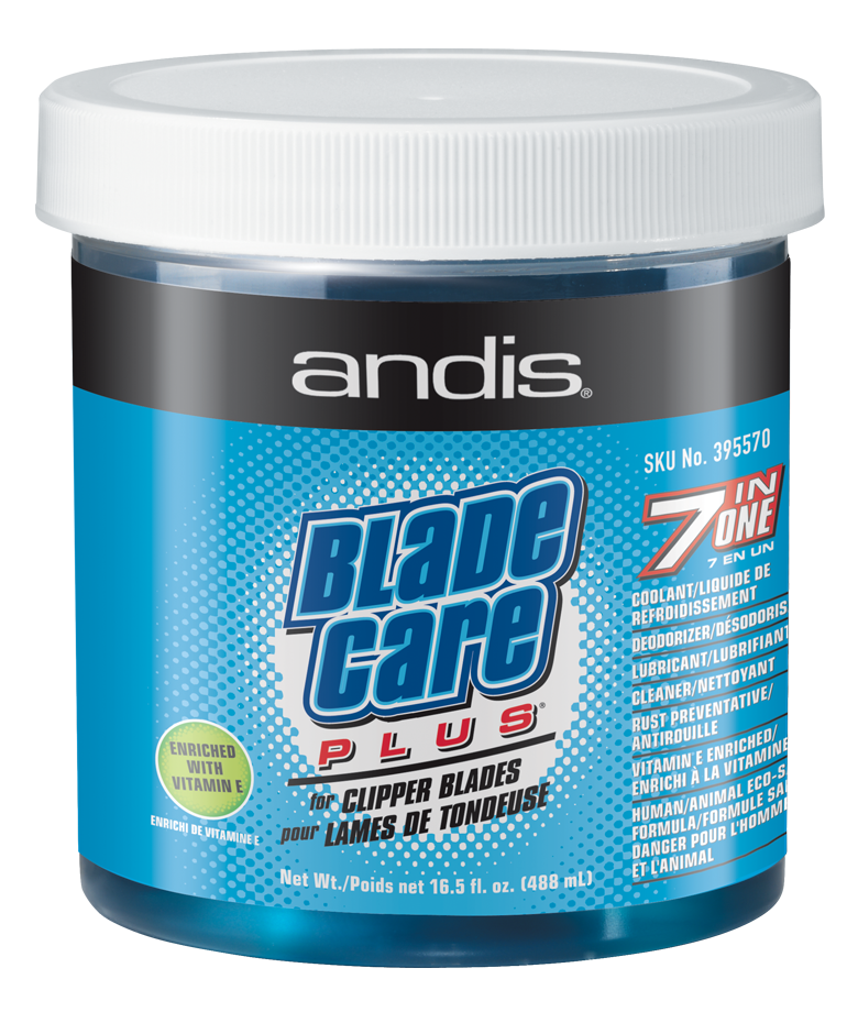 Cool, deodorize, lubricate, clean and prevent rust––all with one quick dip. Pour a small amount of Blade Care Plus into the jar’s lid or bowl.