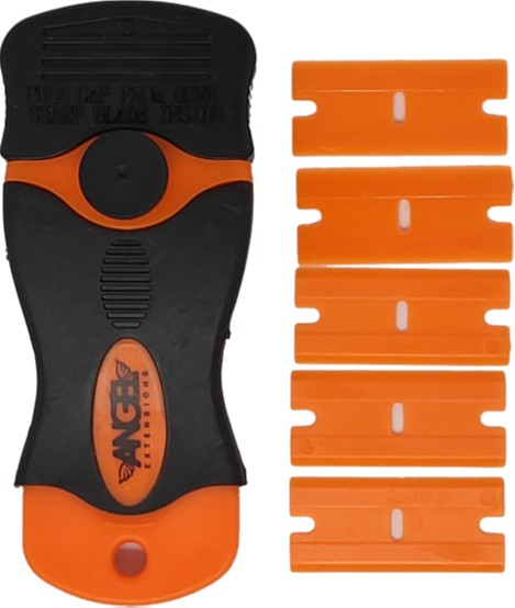 Take the stress out of re-taping and make the process faster, easier, and less sticky with the Angel Tape Scraper!