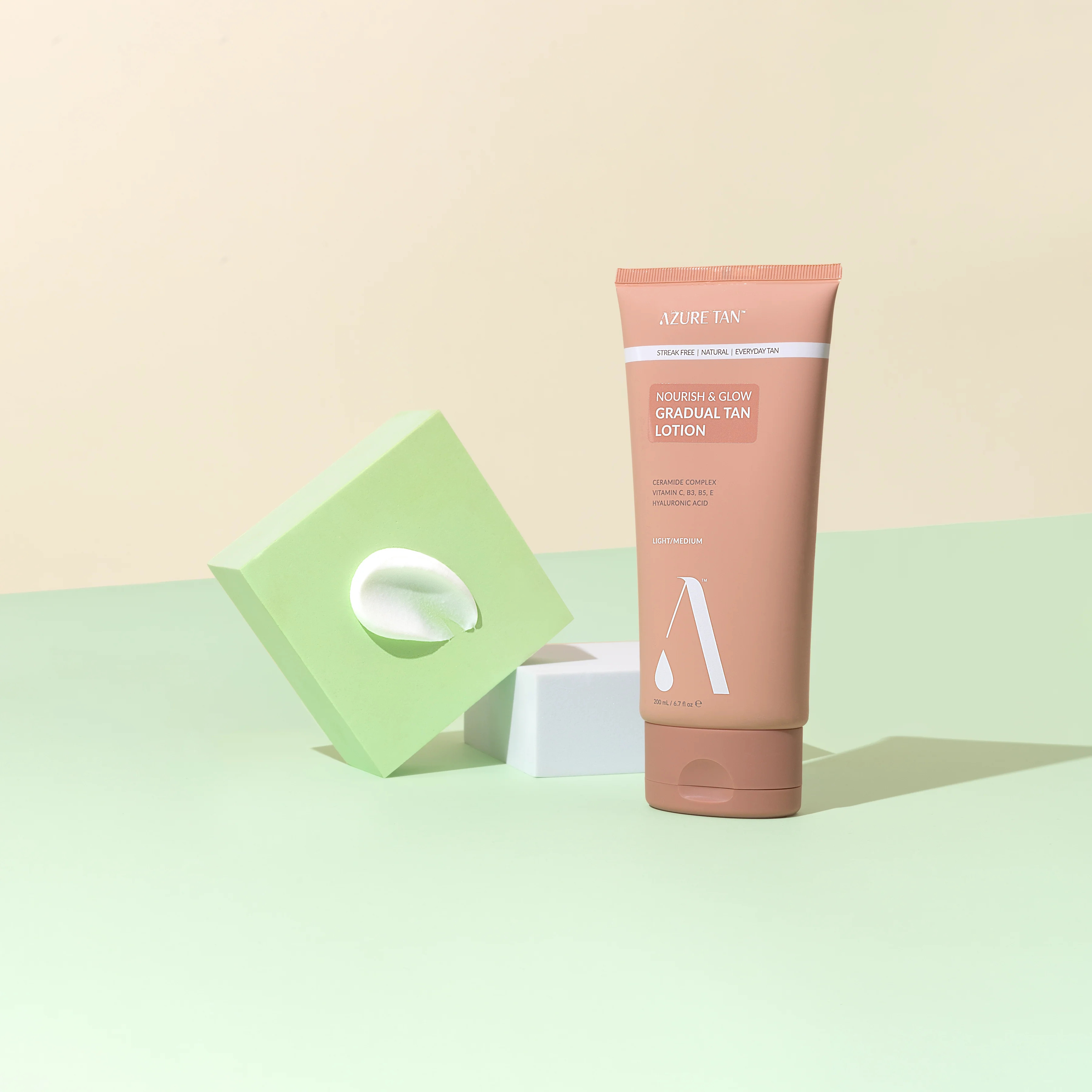 Azure Tan Nourish & Glow Gradual Tan Lotion is designed to replenish your skin with moisture to keep the skin hydrated and glowing.