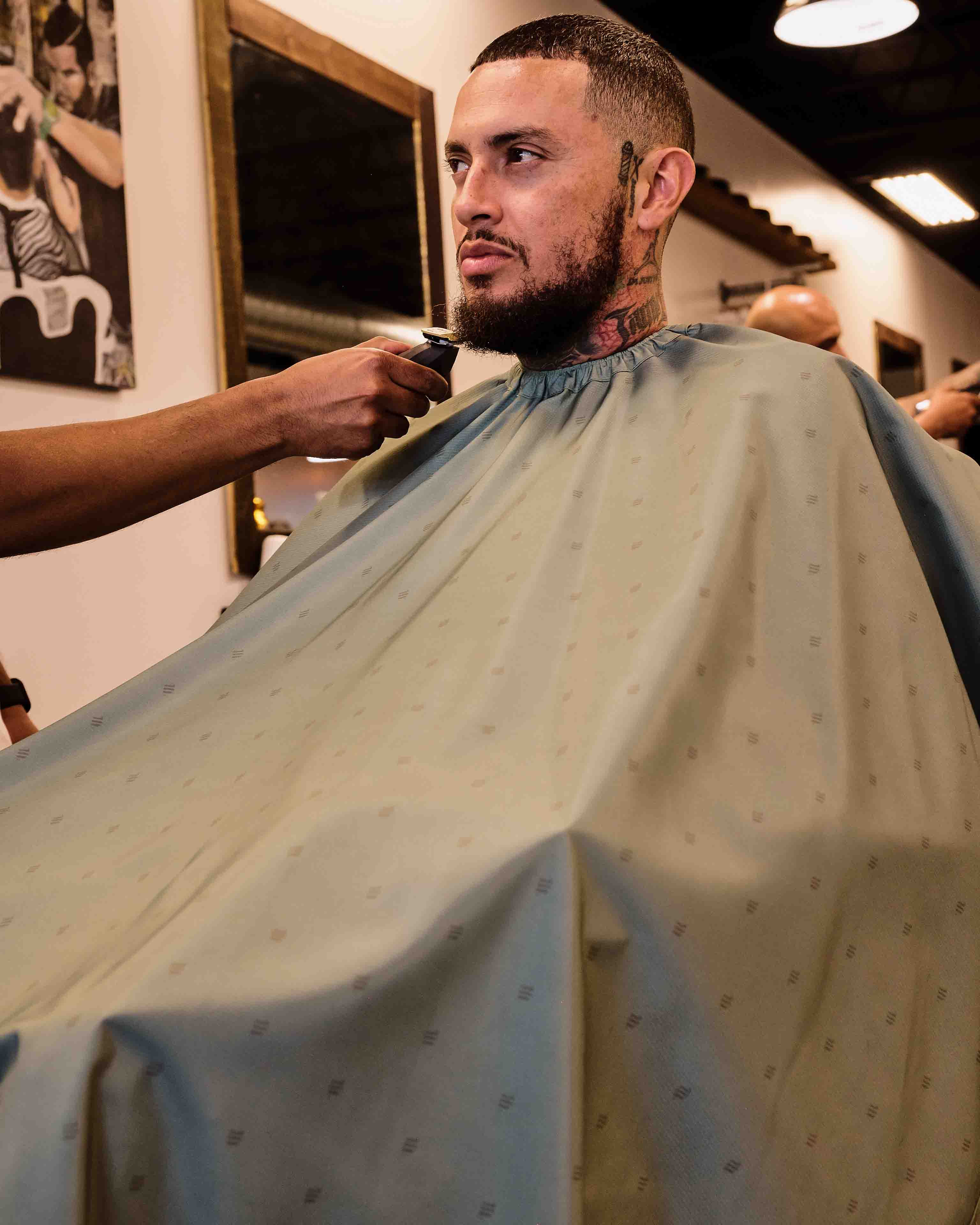The Barber Cape is engineered with static-reducing NanoShield carbon fiber infused material, extra length in the back and an elastic neckband to keep client’s cool & comfortable.