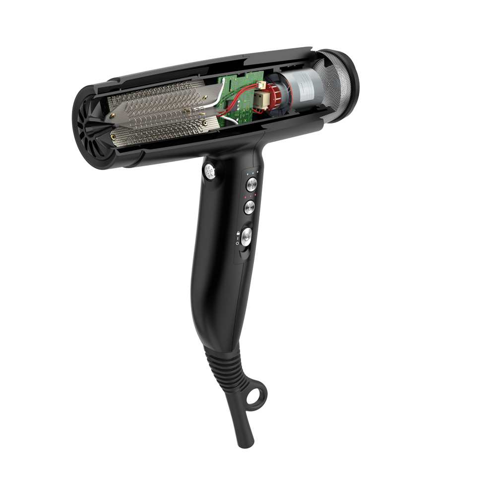 Hairdryer suction is very important. It determines the performance of the product; from airflow to pressure, to temperature. A constantly cleaned filter helps the hairdryer maintain perfect design performance. Having a clean filter is very important for a hairdryer like the X Cell, which is fully electronic with automatic temperature control. This is why we have chosen not to implement any unnecessary protection. This way, the filter is always clearly visible and it is very easy to see when it needs cleaning. By covering the filter, as our competitors do, it is not possible to see the conditions very well and therefore the risk of having a clogged filter is very high. Lack of filter cleaning also means reducing the possible life of all the product’s internal parts. The special shape of the inner cases combined with a special steel micro-filter makes it virtually impossible to break.