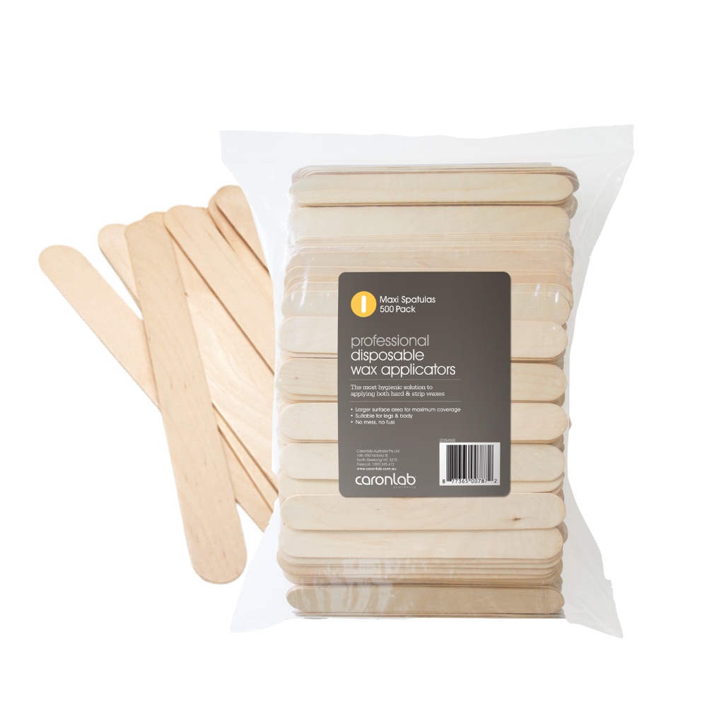 Designed for use on the arms, legs, back, chest and stomach, these Spatulas ensure efficient and even Wax application. The largest Spatula in the Caronlab Australia Disposable Spatula range, Professional Disposable Spatulas Maxi provide maximum coverage during professional Wax application. Each Professional Disposable Spatula Maxi is crafted from high-quality, Smooth Birch Wood, providing a comfortable grip and splinter-free application.