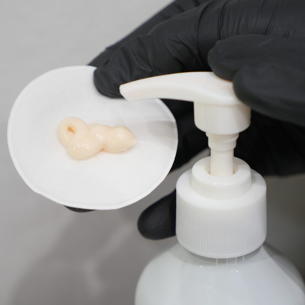 - Pale peach color with a rich, luxurious texture and non-greasy application