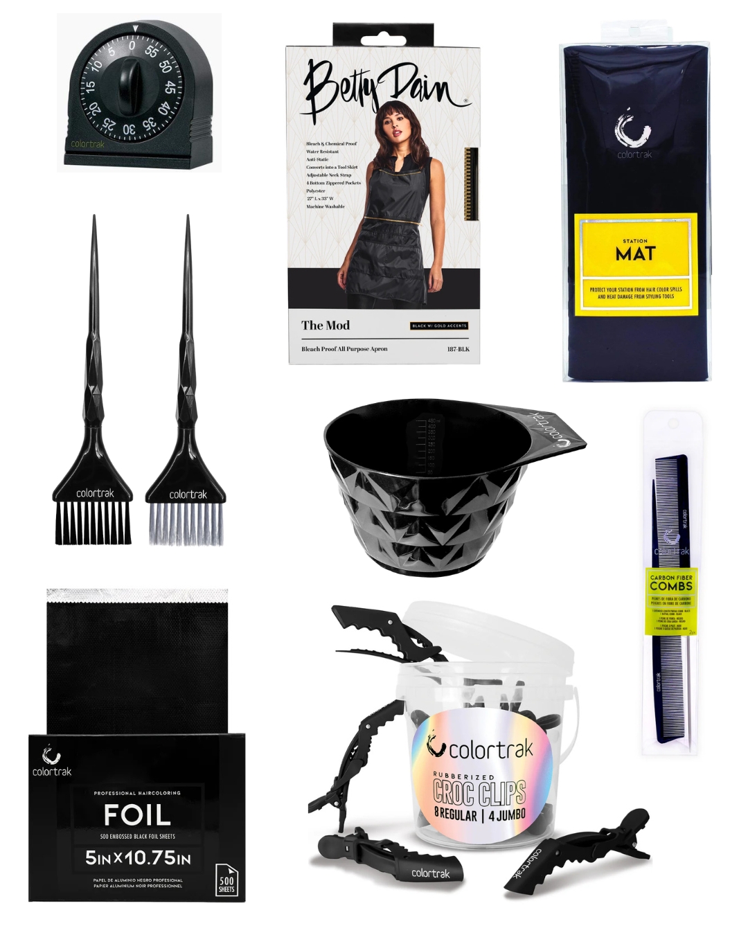 Colour starts with the right tools—and the All Black Essentials Bundle has them all. Designed for precision, protection, and perfect application, this set keeps your artistry seamless from bowl to rinse.