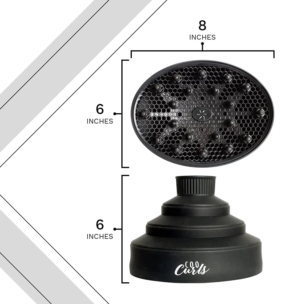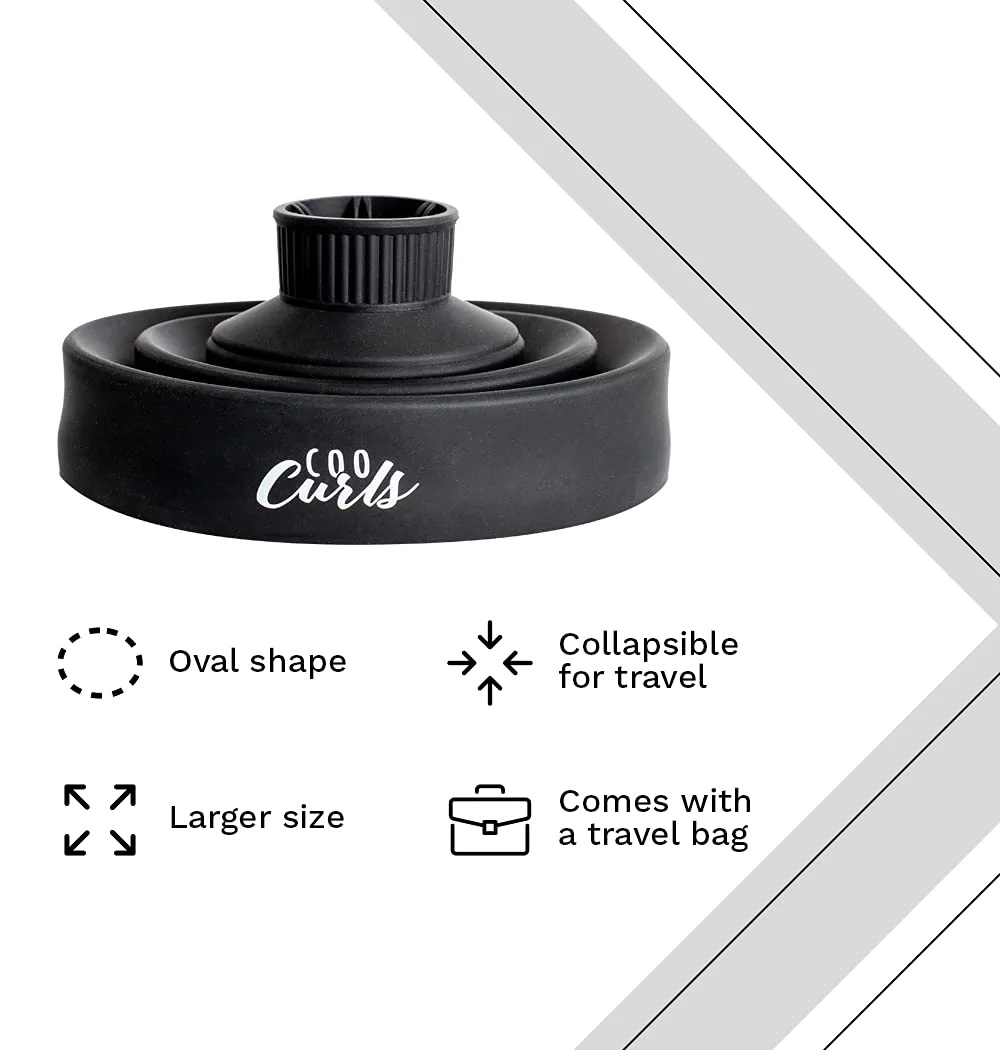 FOR GORGEOUS CURLS: The oval shape of our collapsible diffuser hair dryer attachment helps give a better curl formation in less time.