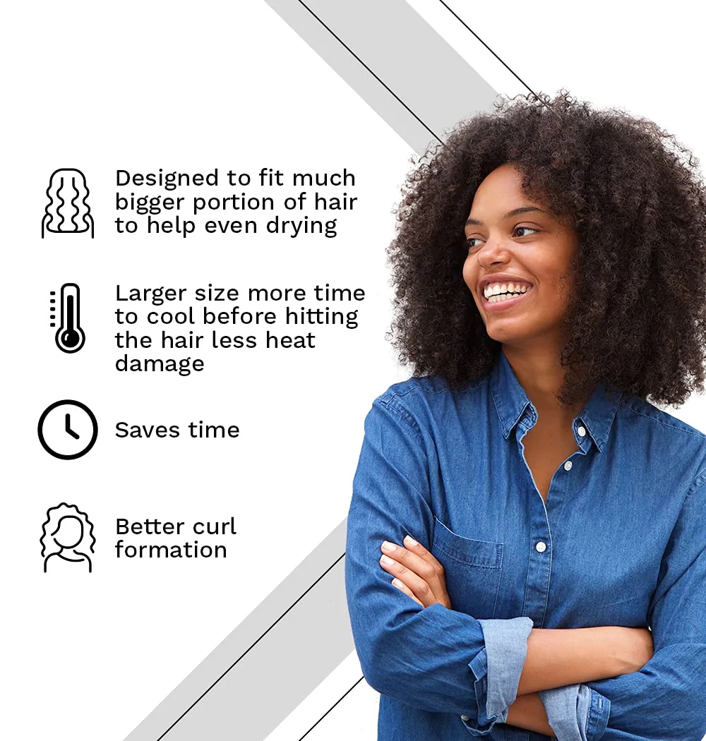 FITS MORE HAIR AT ONCE: The larger oval shape fits more hair than the standard hair diffuser for curly hair, saving you time and allowing you to dry more hair at one time.