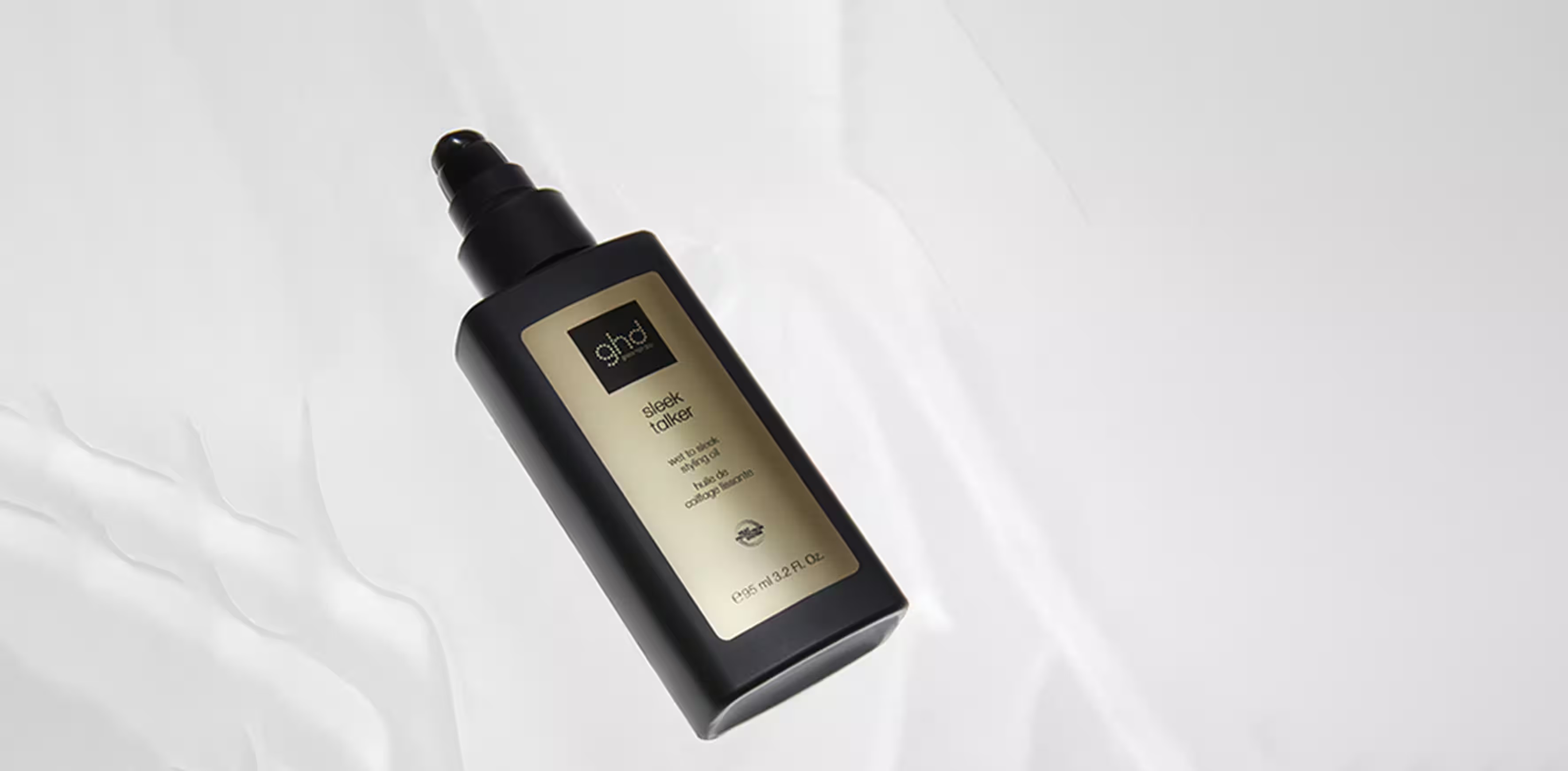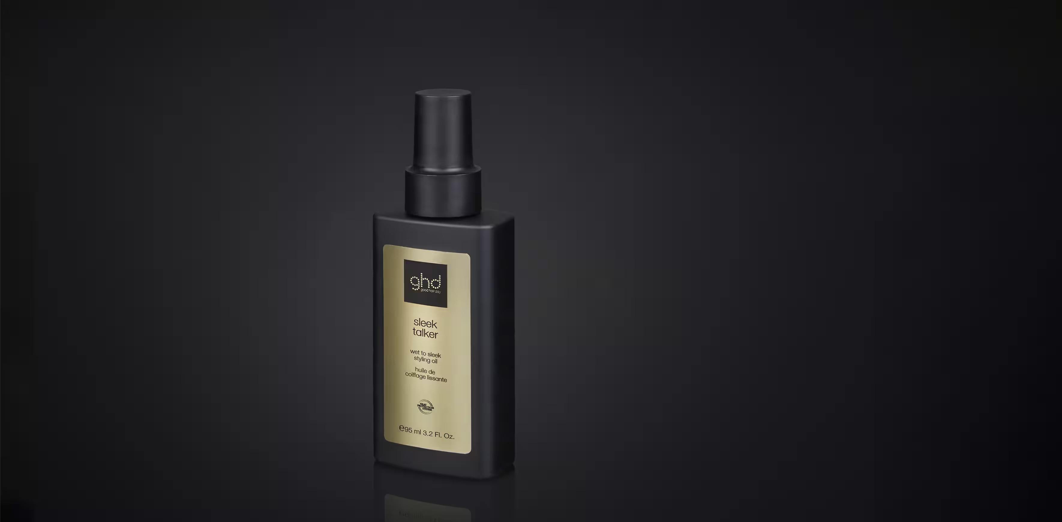 Introducing new ghd sleek talker - our wet to sleek styling oil to smooth, soften and protect hair for long-lasting professional results with a beautifully sleek finish.