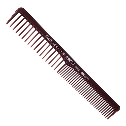 Krest Goldilocks Cutting Comb is made from DuPoint Delrin for added strength, low friction and heat resistance. Features extra wide teeth for low tension combing on thick or curly hair, and fine teeth for precision cutting with tension and control.