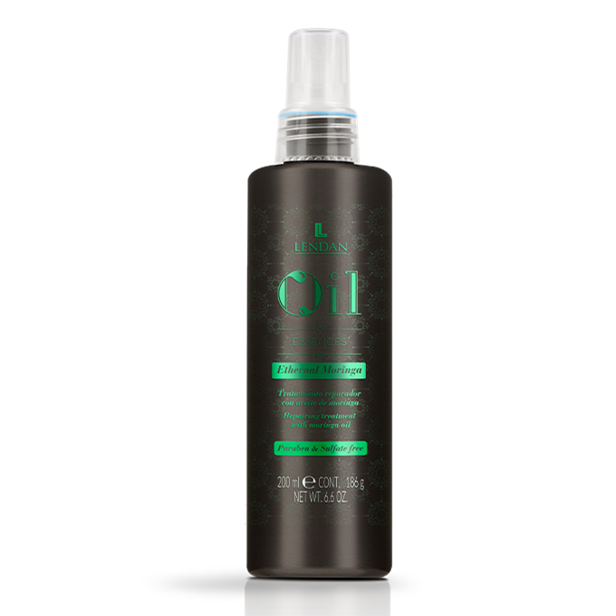 Lendan - Oil Essences - Ethereal Moringa Leave-in Treatment - A concentrated repairing spray ideal for treating damaged and dehydrated hair. With powerful anti-frizz action and heat defense up to 180ºC. Formulated with Vitamin E, for a rejuvenating and hydrating effect and reduction of split ends.