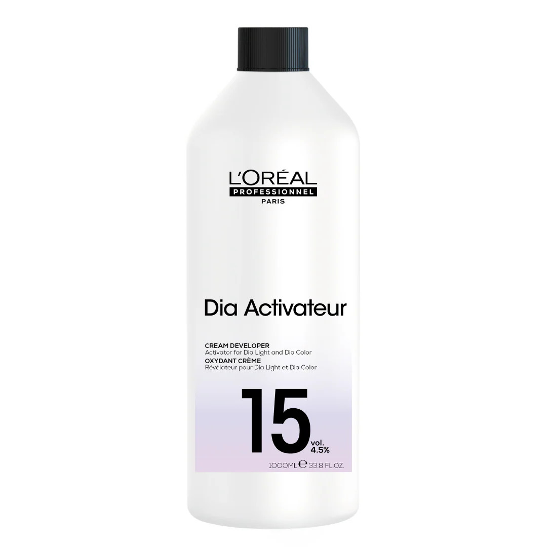 DIActivateur Developer 15-Volume is great for color treated hair and sensitized hair; for more luminous color; for corrective color/pre-coloration; for permed, smoothed, or straightened hair; and for refreshing and toning highlights.