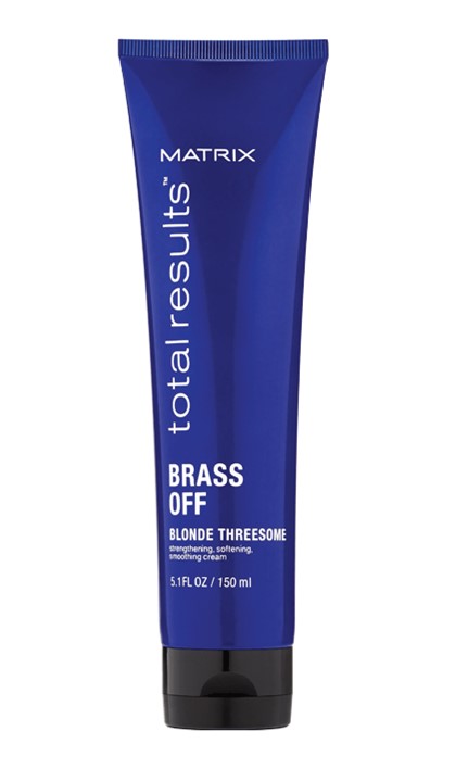 Matrix Total Results Brass Off Blonde Threesome Leave-In Cream smoothes and nourishes lightened hair, leaving hair feeling soft and strong.