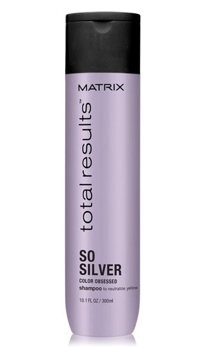 Total Results So Silver is a clarifying shampoo that cleanses and neutralizes unwanted brassy warmth and eliminates dull, yellow tones. It illuminates highlights on blondes and adds shimmering brightness for color treated and natural hair ranging from grey to white shades.