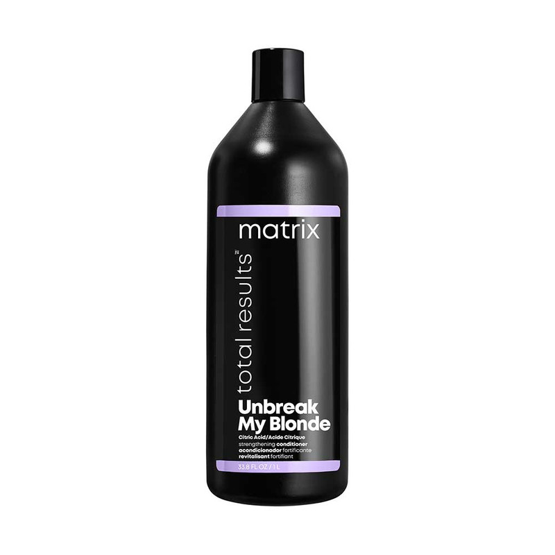 Matrix Total Results Unbreak My Blonde Conditioner is infused with citric acid to reinforce weakened bonds, nourishes and softens without weighing hair down.