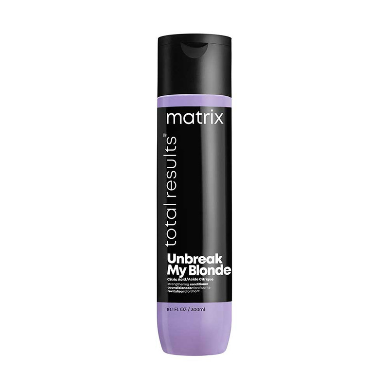Matrix Total Results Unbreak My Blonde Conditioner is infused with citric acid to reinforce weakened bonds, nourishes and softens without weighing hair down.