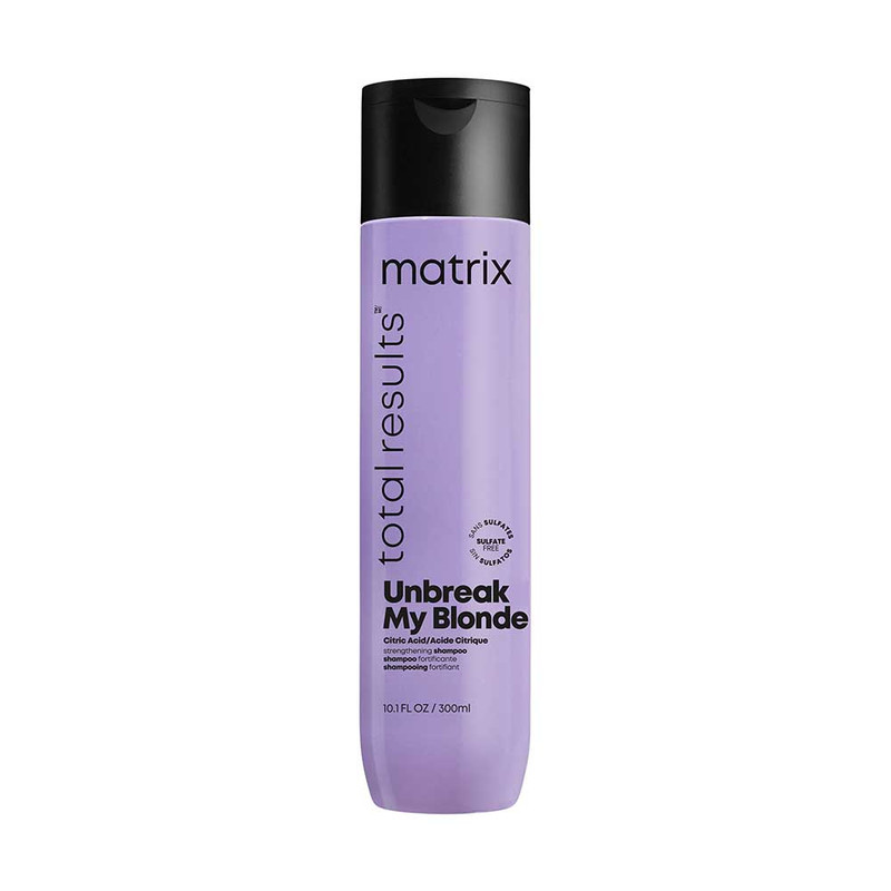 Matrix Total Results Unbreak My Blonde Shampoo is infused with citric acid to gently cleanse sensitive hair. Revives damaged and over-processed hair, leaving hair soft, shiny and 3x stronger!*