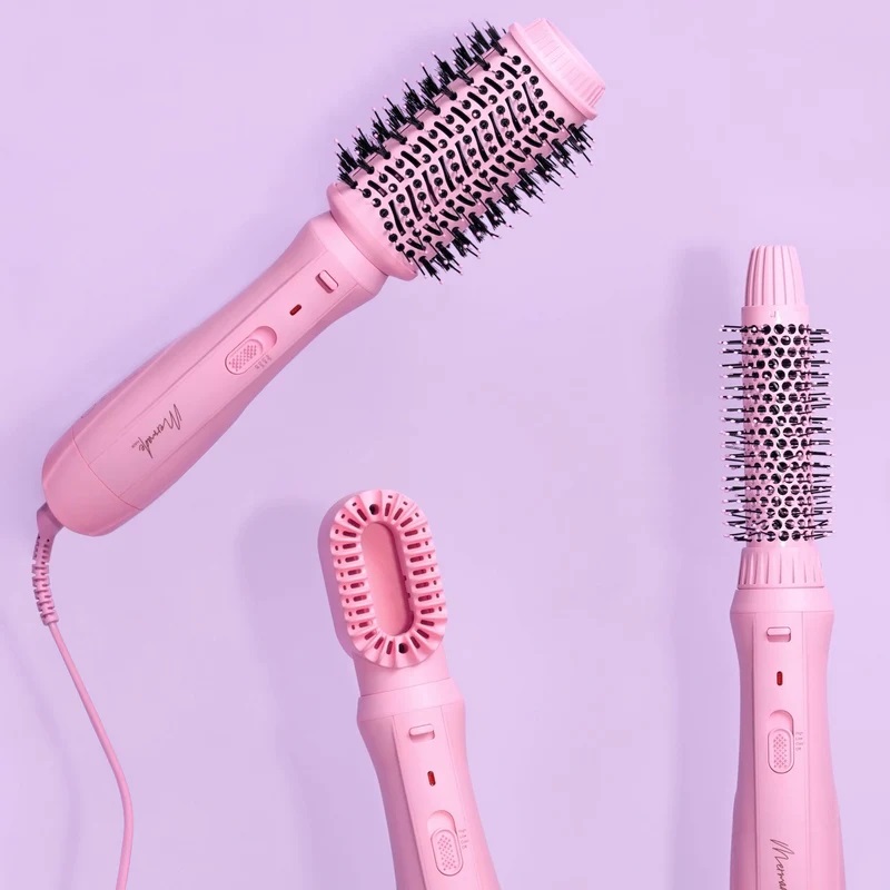 Introducing the Mermade Interchangeable Blow Dry Brush. With one base and three heads, you can dry, smooth and style hair with a single tool. It works like this; dry the roots and any excess water with the pre-styling dryer attachment. Then choose your fighter. The Volume Head (60mm) oval attachment creates epic curve and bounce for the ultimate salon quality blowout. The Curling Head (32mm) round curling barrel creates loose curls with ease. The detachable design also means it’s the only tool you need to pack in your suitcase. The blowout of your dreams is just one tool away.
