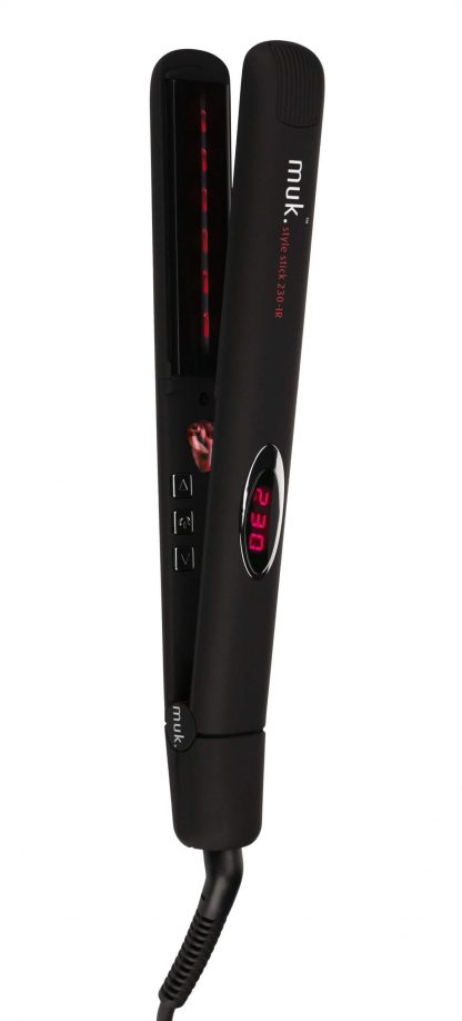 The muk Style Stick 230-IR is your weapon for smooth, shiny and sleek hair. It utilises a revolutionary strip of powerful far infrared lights embedded in the irons ceramic plate to infuse a gentle heat deep inside the hair shaft, effectively straightening hair with a single pass.