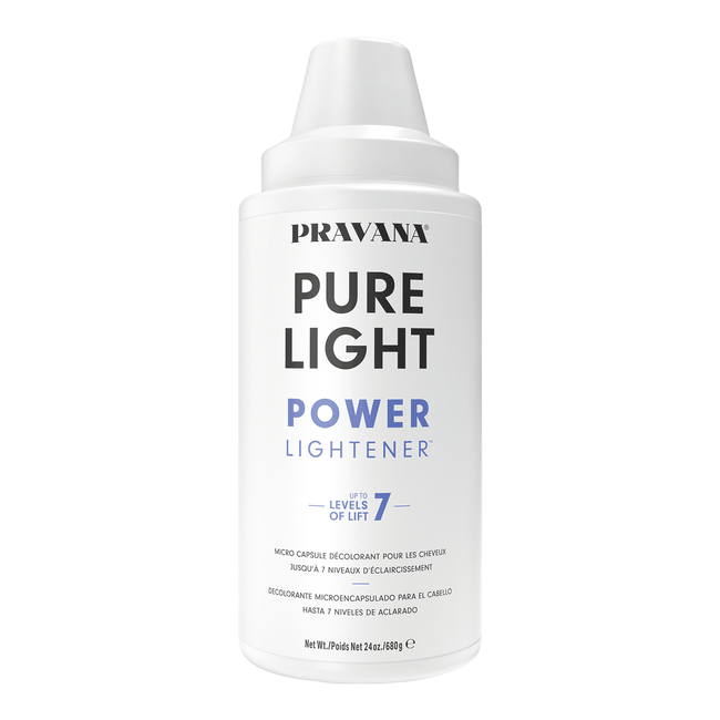 Pure Light Power Lightener is a blue based powder lightener proven to lift up to 7 levels while maintaining the natural shine of the hair.