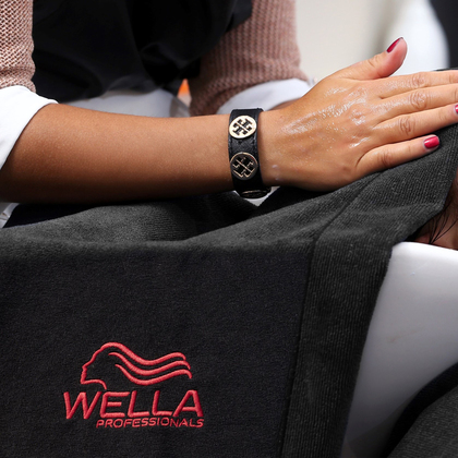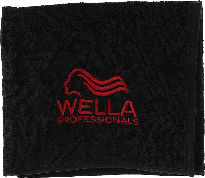 This black cotton towel from Wella Professionals is of professional salon quality and embossed with a red Wella Professionals logo. Essential item for your salon and colouring services. Machine washable.